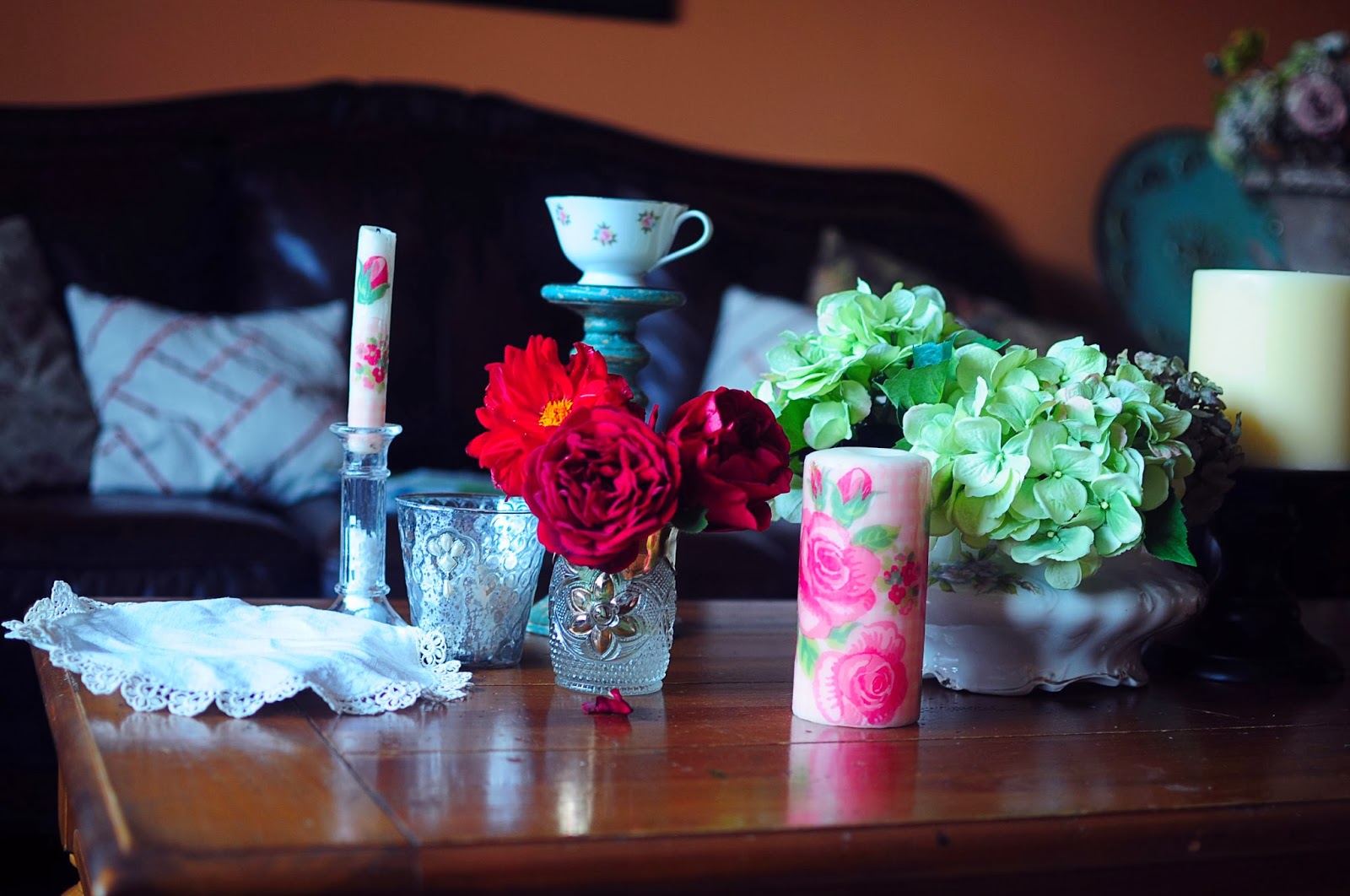 I cant believe our summer time is gone...We will spent five months in the house, getting cozy and waiting impatiently for Spring...I will start decorating for Christmas next week. I usually start right after Halloween..After Christmas, I just start making plans for the summer..In the cold months I tend to decorate more...I dont really like cold months, but I guess my flowers need them...I already miss my flowers...Yesterday I cut the last two red roses and one red Dahlia...